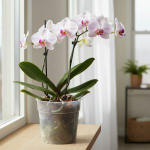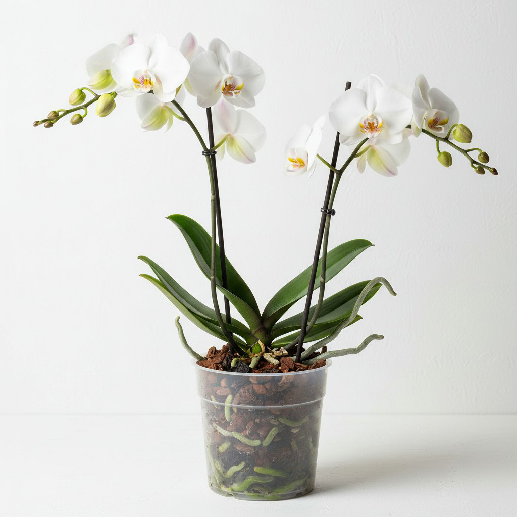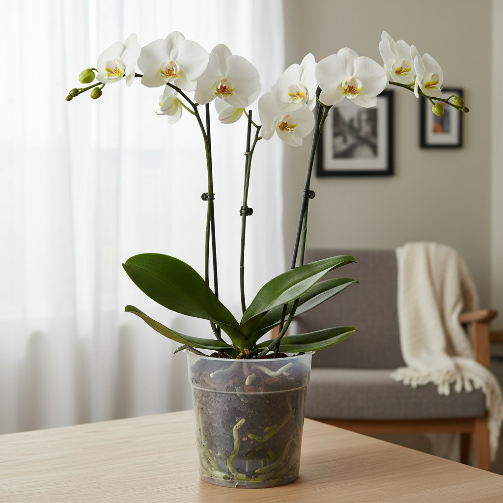 Прозрачный горшок идеально подходит для выращивания орхидей или других растений, корневой системе которых необходим свет.